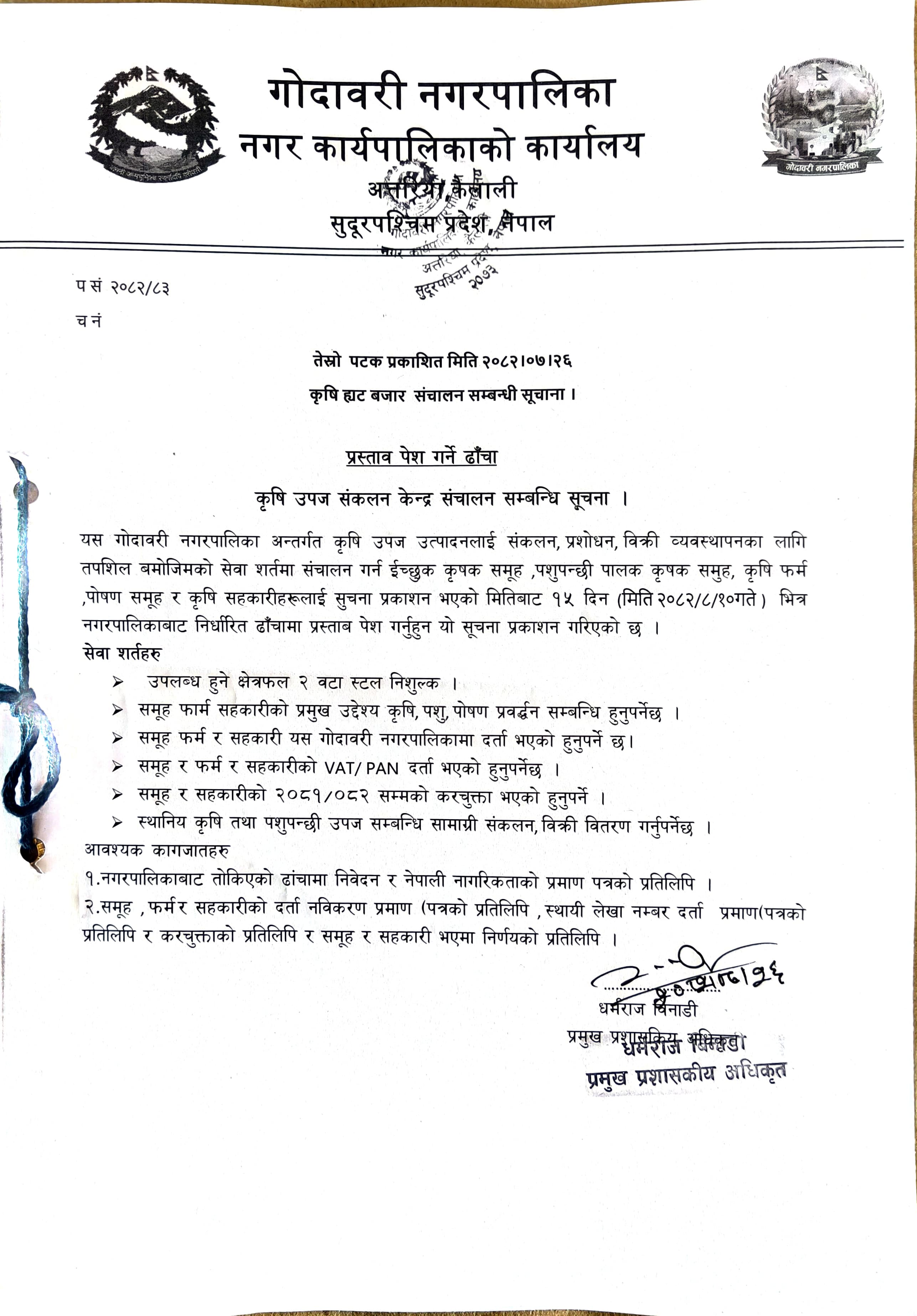 कृषि उपज संकलन केन्द्र संञ्चालन सम्बन्धी सूचना।
