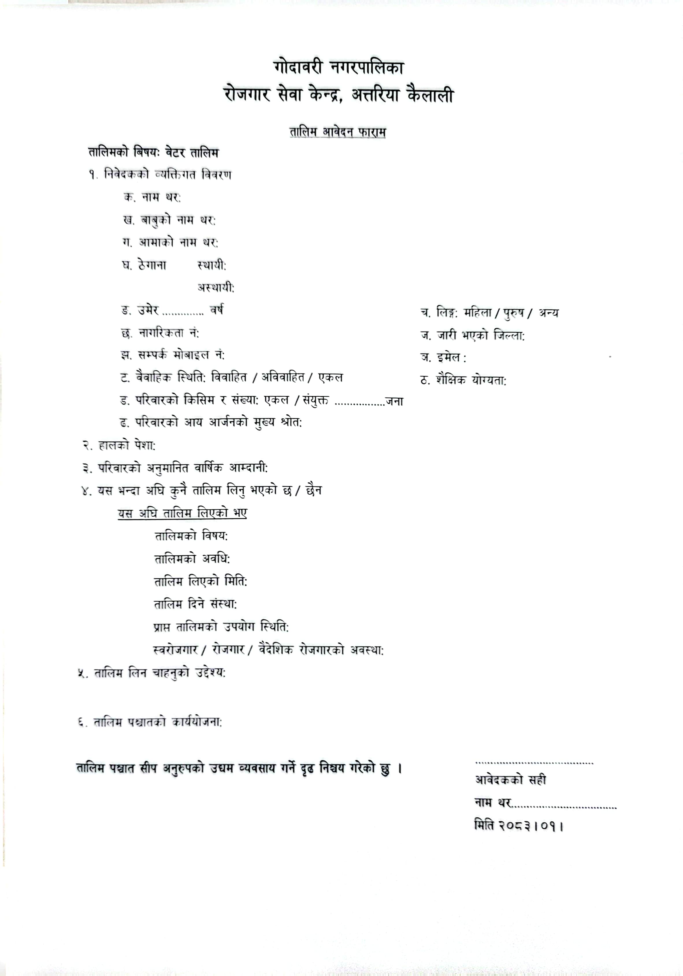 नि:शुल्क वेटर तालीम सम्बन्धी सूचना ।