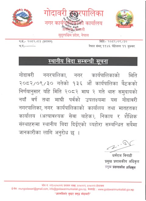 माग २ गते स्थानिय विदा सम्बन्धमा ।