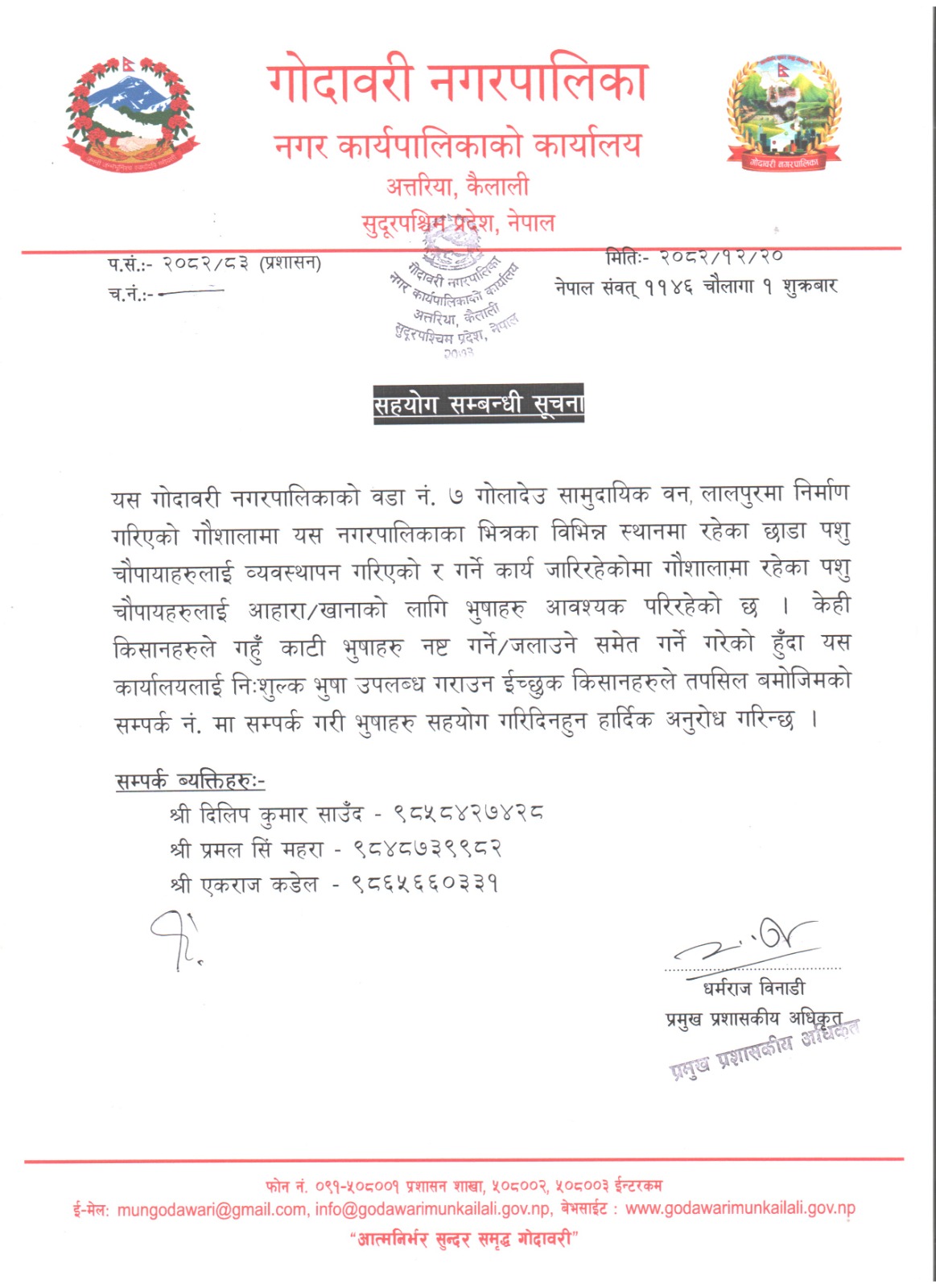 इमेल: mungodawari@gmail.com / info@godawarimunkailali.gov.np