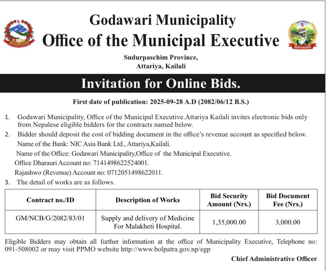 Invitation for online bids ( supply and delivery of medicines for Malakheti Hospital)