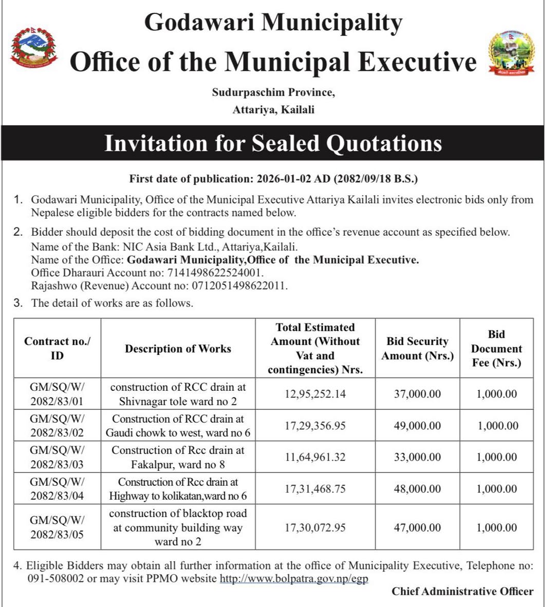 Invitation for Sealed Quotation(RCC drain, blacktop road)